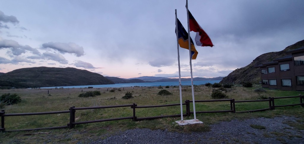 Paine Grande: these flagpoles served as a beacon for us in the last leg of the trail